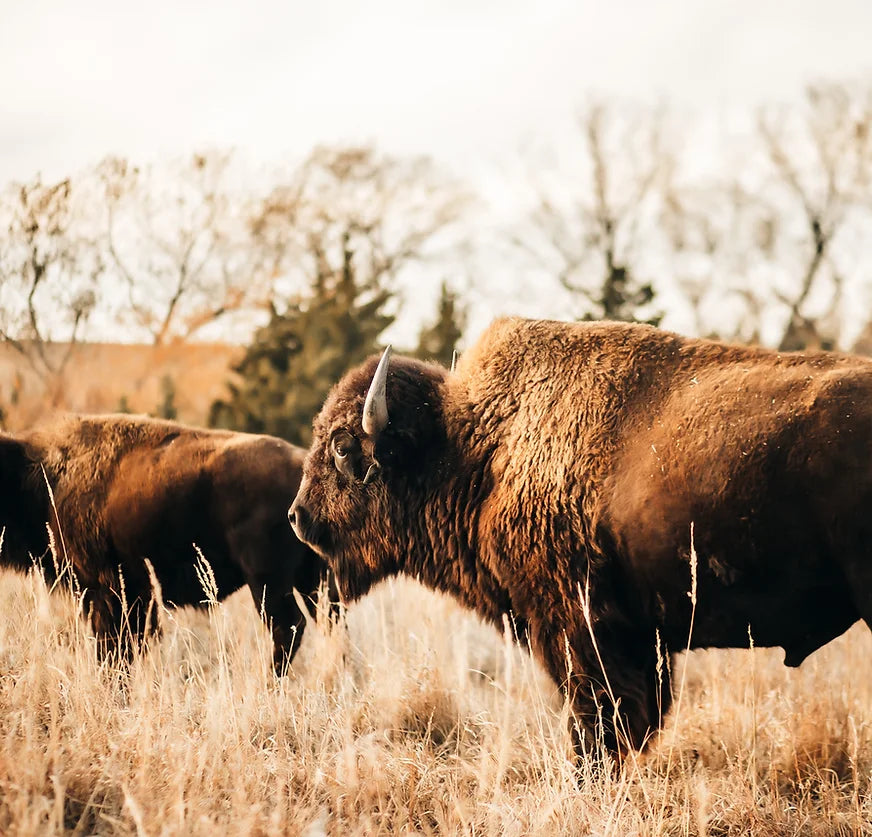 The Flint Hills provide our herd with nutrient dense native grasses. The tallgrass prairie supplies our bison with Big and Little Bluestem, Switchgrass and Indian grass, as well as an abundant supply of herbaceous plants. The presence of bison encourages native grass growth by propagation as well as diversifying birds, insects and other native prairie wildlife.